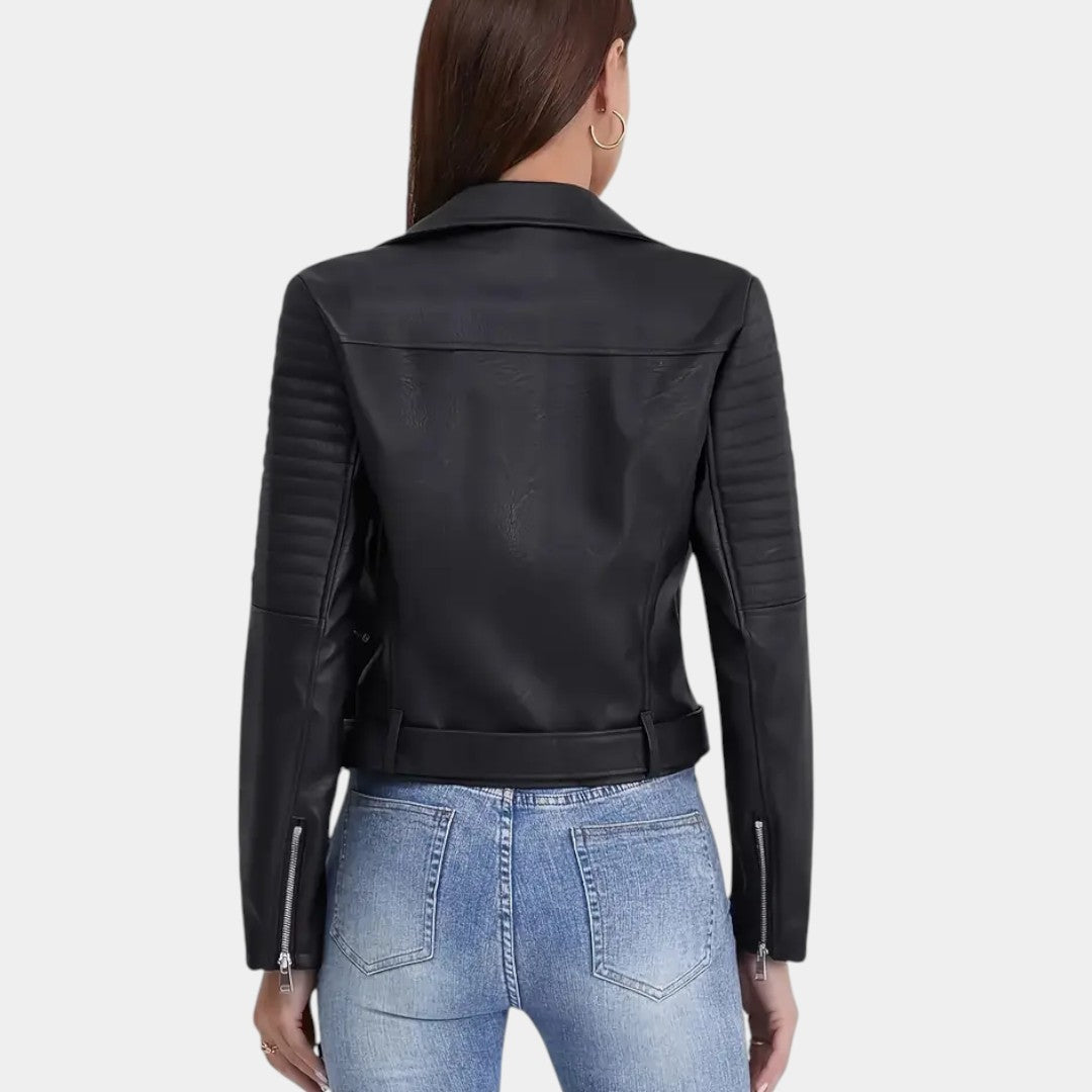 Táto predĺžená bunda z ekokože je ideálnym kúskom pre ženy, ktoré chcú spojiť eleganciu a odvážny štýl v jednom. Dizajn inšpirovaný motorkárskym vzhľadom dodáva outfitu sebavedomie, zatiaľ čo dlhší strih prináša sofistikovanosť a univerzálnosť. Je perfektná na mestské a moderné kombinácie a zabezpečí štýl pri každej príležitosti.