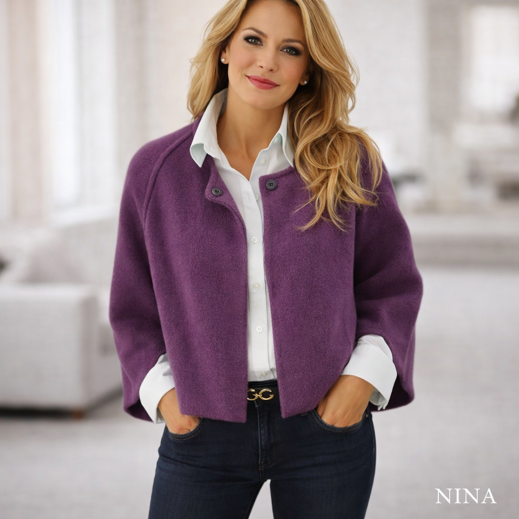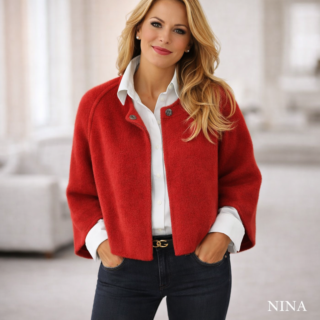 Bunda Judith je vyrobená z jemného umelého kašmíru, ktorý je mäkký na dotyk a príjemný na nosenie počas celého dňa. Skrátený strih pôsobí moderne a žensky a ľahko sa kombinuje s pracovnými aj voľnočasovými outfitmi.