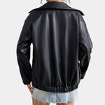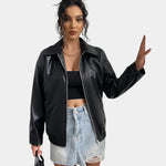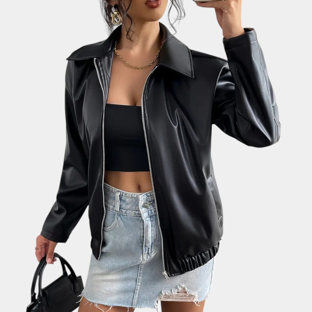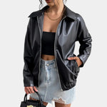 Minimalistická bunda z ekokože s univerzálnym dizajnom