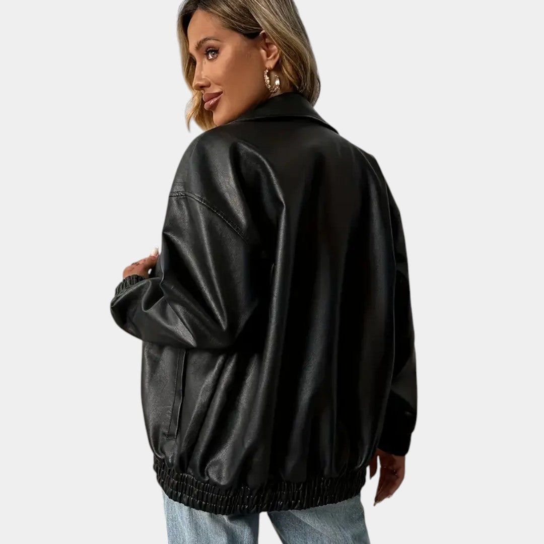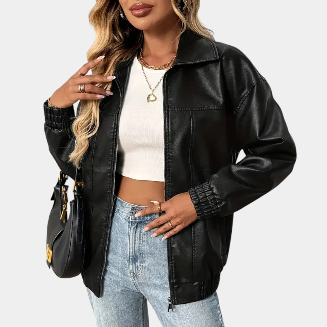 Moderná bunda z ekokože so sofistikovaným štýlom
