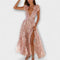 - Dizajn: Hlboký V-výstrih s výrezom v páse a širokou, voľne sa pohybujúcou sukňou