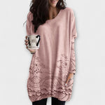 Riley - Tlačený pohodlný sveter je tvojím novým obľúbeným kúsok pre uvoľnenú eleganciu. S vlnitým lemom, prepracovanou kvetinovou výšivkou a nadrozmernou siluetou kombinuje luxusné detaily s každodenným pohodlím.