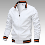Ikonický štýl – Moderný strih bomber bundy s pruhovanými detailmi dodáva nádych dynamickej elegancie.