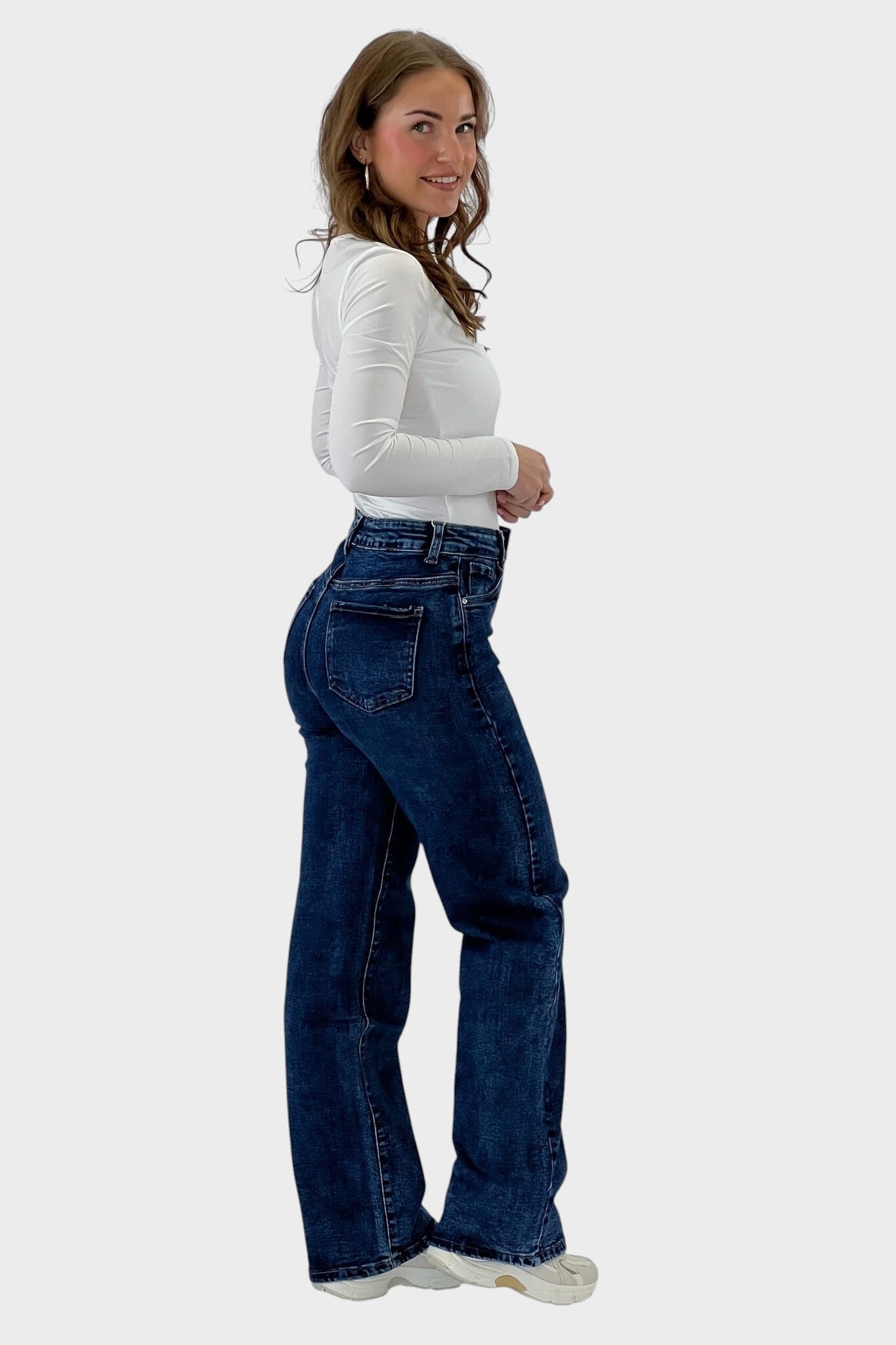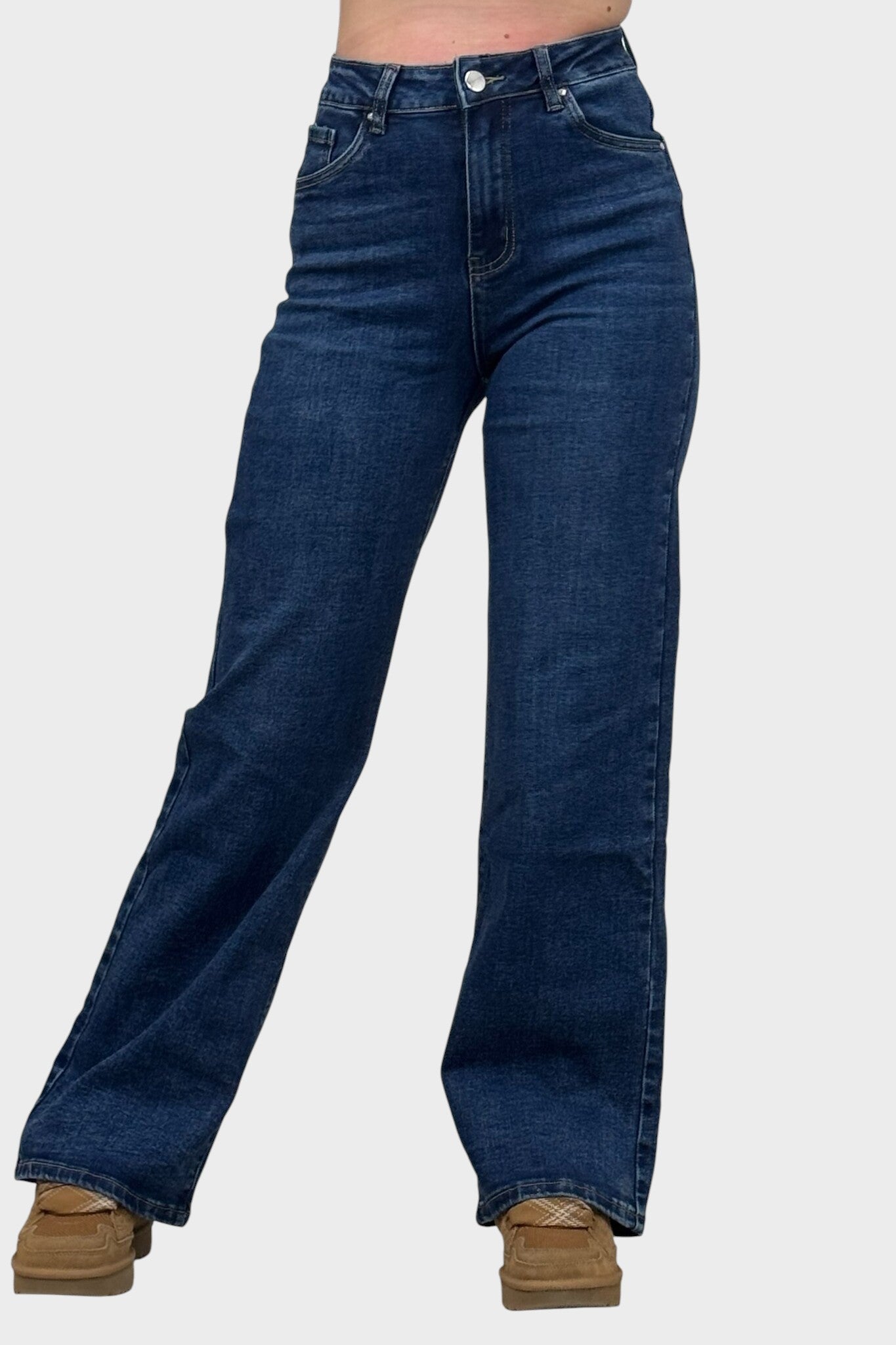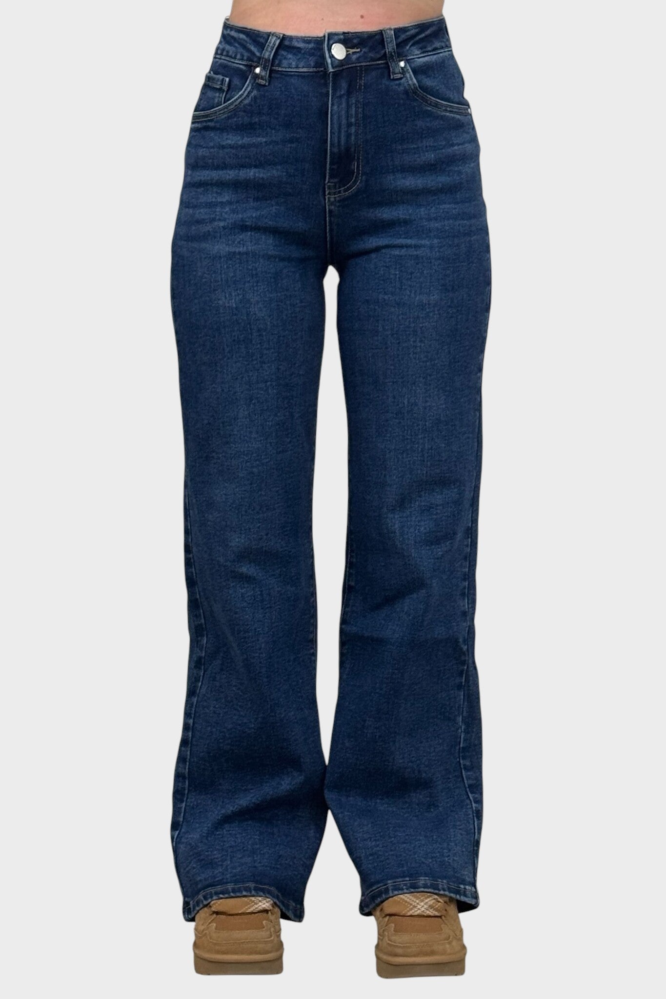 Tieto džínsy so širokými nohavicami sú určené pre ženy, ktoré si cenia pohodlie a eleganciu v každodennom outfite. Voľný strih poskytuje slobodu pohybu a uvoľnené nosenie, ktoré zvýrazňuje postavu s nádychom rafinovanosti. Univerzálne a ľahko kombinovateľné, sú ideálne na ležérne aj elegantnejšie outfity, pričom prinášajú sebavedomie a štýl pri každej príležitosti.