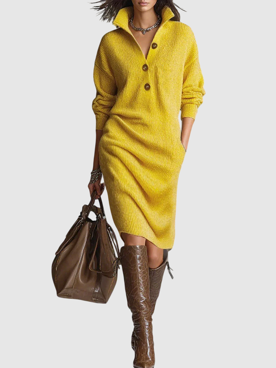 Tieto pletené šaty spájajú eleganciu, komfort a nenútený štýl v jednom kúsku. Majú uvoľnený strih, ktorý zvýrazní postavu, golier s gombíkmi dodávajúci moderný charakter a dĺžku ideálnu na každodenné nosenie aj na špeciálne príležitosti. Materiál je príjemný na dotyk, mäkký a pohodlný, takže sa v nich budeš cítiť skvelo počas celého dňa. Dokonale sa hodia k čižmám, teniskám aj elegantným doplnkom.