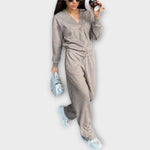 Navrhnuté pre ženy, ktoré si cenia štýl a pohodlie rovnako. Perfektné na relaxačné hodiny doma alebo na neformálny elegantný výlet – táto sada je nevyhnutnosťou pre každú sezónu.