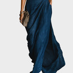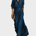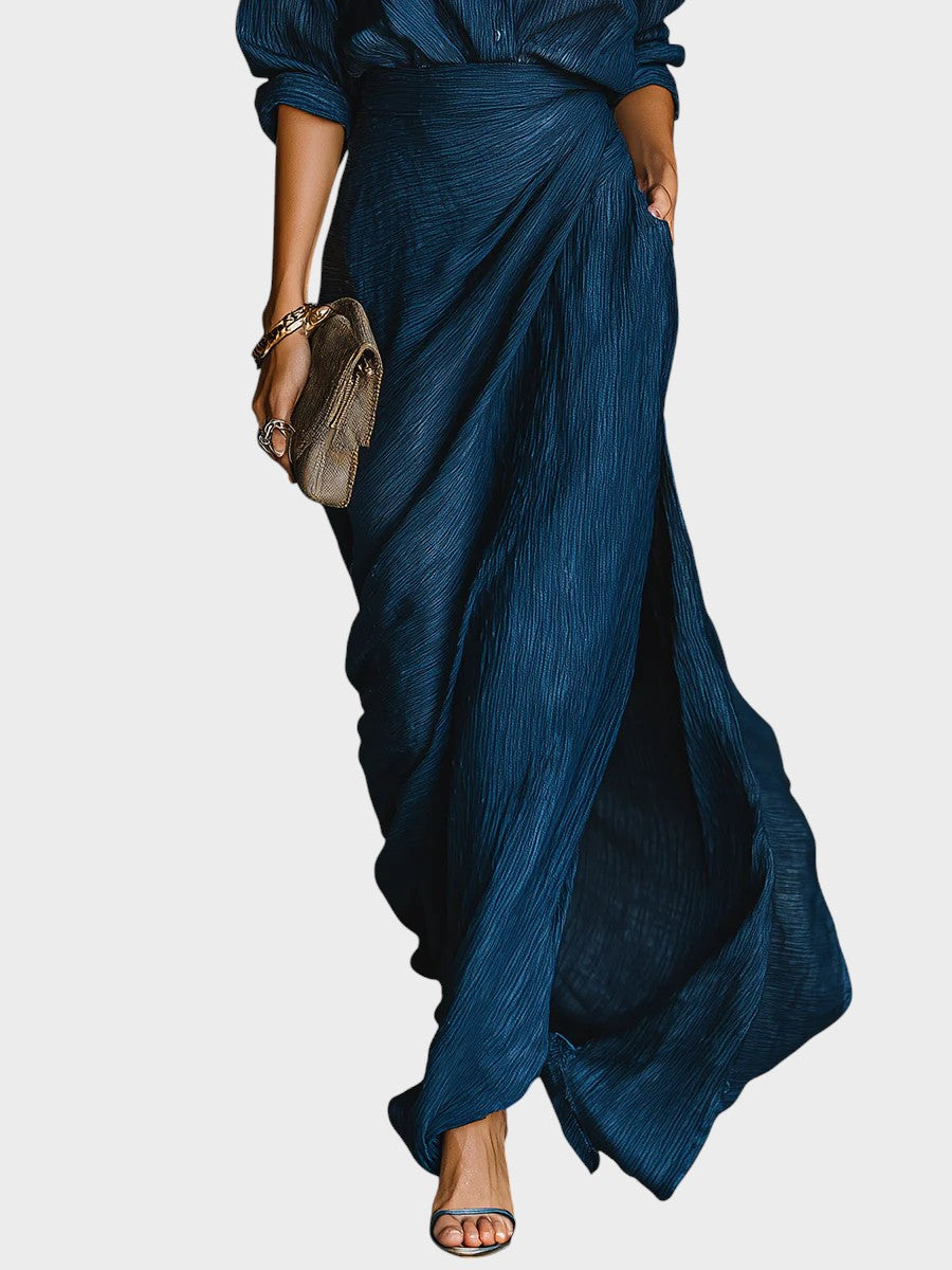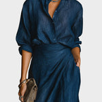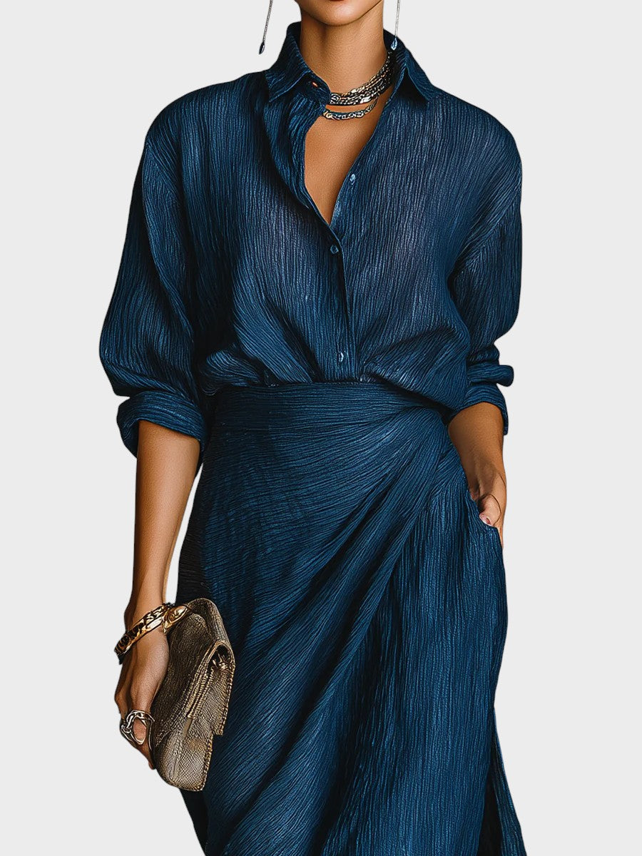 Anita™| Elegantný komplet košele a dlhej sukne zo zmesi bavlny a ľanu v tmavomodrej farbe