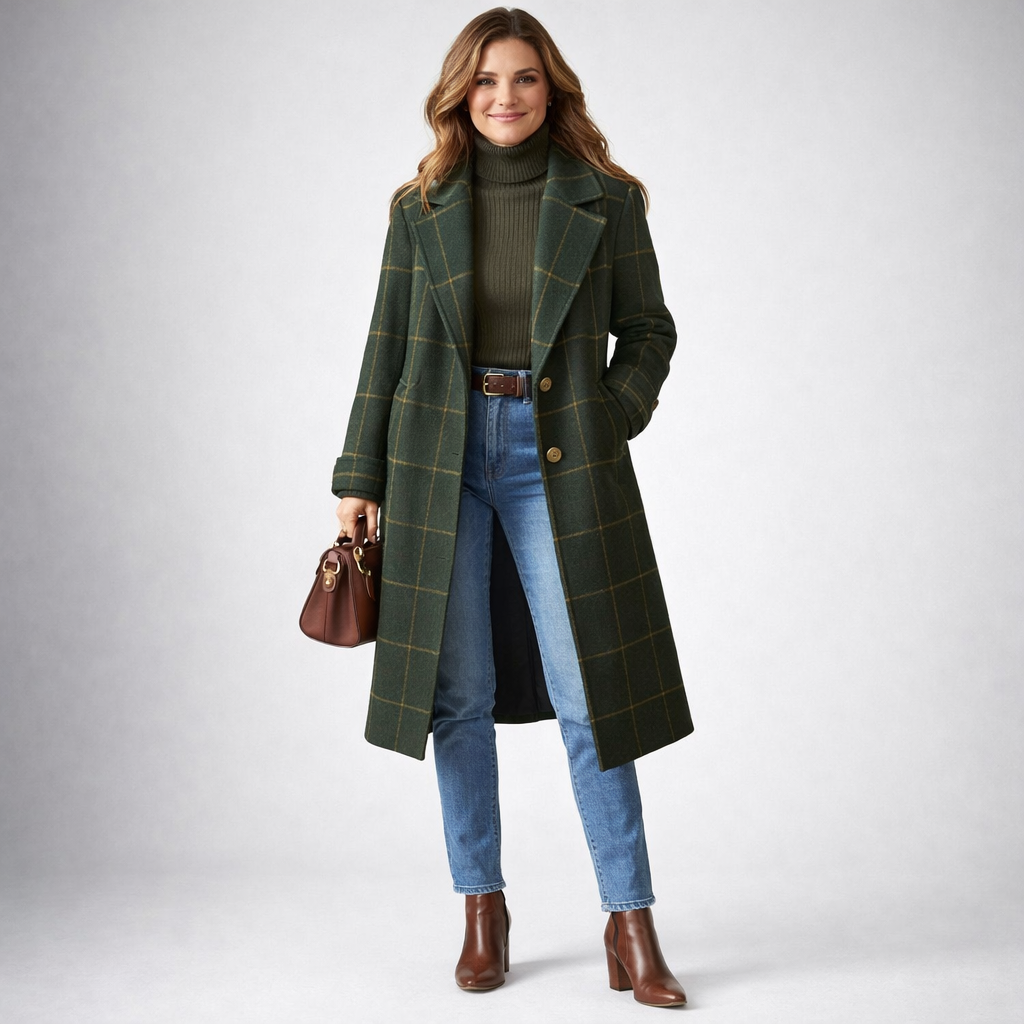 Katarina – Klasický vlnený kabát s károvaným vzorom