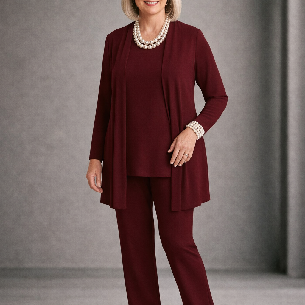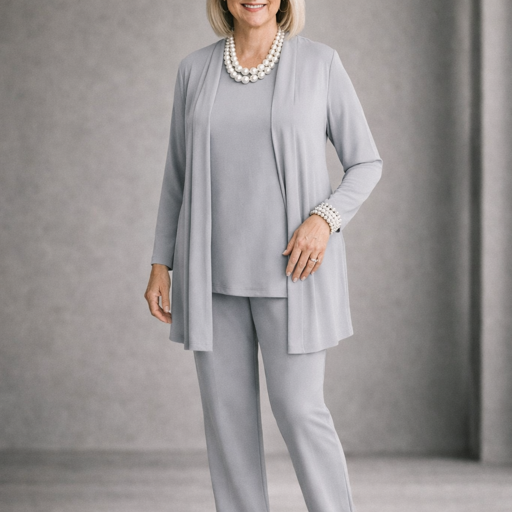 Trojdielny set Hana je navrhnutý pre ženy, ktoré chcú pôsobiť upravene a cítiť sa pohodlne počas celého dňa. Plynulé línie a jemne štruktúrovaná silueta vytvárajú elegantný vzhľad, ktorý sa prirodzene prispôsobí denným príležitostiam aj večerným stretnutiam.